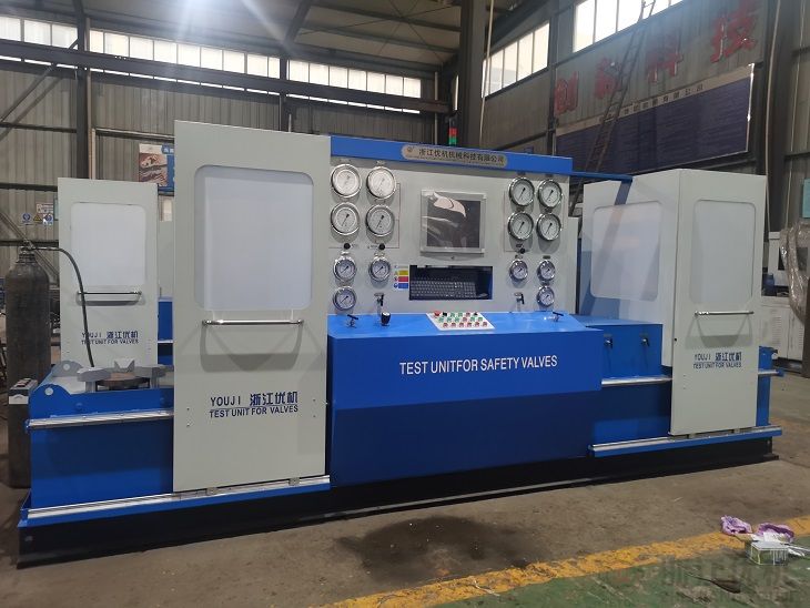JLA型安全閥性能校驗(yàn)臺是我公司科技人員按照國家GB/T1 3927—92和ZBJl6006—90有關(guān)標(biāo)準(zhǔn)要求參照國外同類產(chǎn)品之優(yōu)點(diǎn),結(jié)合我們多年生產(chǎn)閥門檢測設(shè)備技術(shù)經(jīng)驗(yàn)基礎(chǔ)上,自行成功研制國內(nèi)首臺JLA型安全閥性能測試。JLA型閥門液壓試壓機(jī)是我公司在積累多年生產(chǎn)閥門檢測設(shè)備技術(shù)的基礎(chǔ)上按照國家GB/T1 3927 — 92《通用閥門壓力試驗(yàn)》和ZBJl6006-90《閥門的試驗(yàn)與檢測》的標(biāo)準(zhǔn)規(guī)范要求,是公司自主研發(fā)的安全閥試驗(yàn)臺并擁有國家技術(shù)專利知識產(chǎn)權(quán),專利號ZL2016 1 0240324.1。該校驗(yàn)臺省去了原傳統(tǒng)的大竄容積的高壓畜氣罐,只需配備普通的0.6MPa空壓氣泵氣源。經(jīng)過本機(jī)會自動進(jìn)行調(diào)節(jié)0.6-32.0MPa氣體介質(zhì)試驗(yàn)壓力。適用于公稱通徑DNl 5~300mm安全閥的整定、啟閉、回座壓