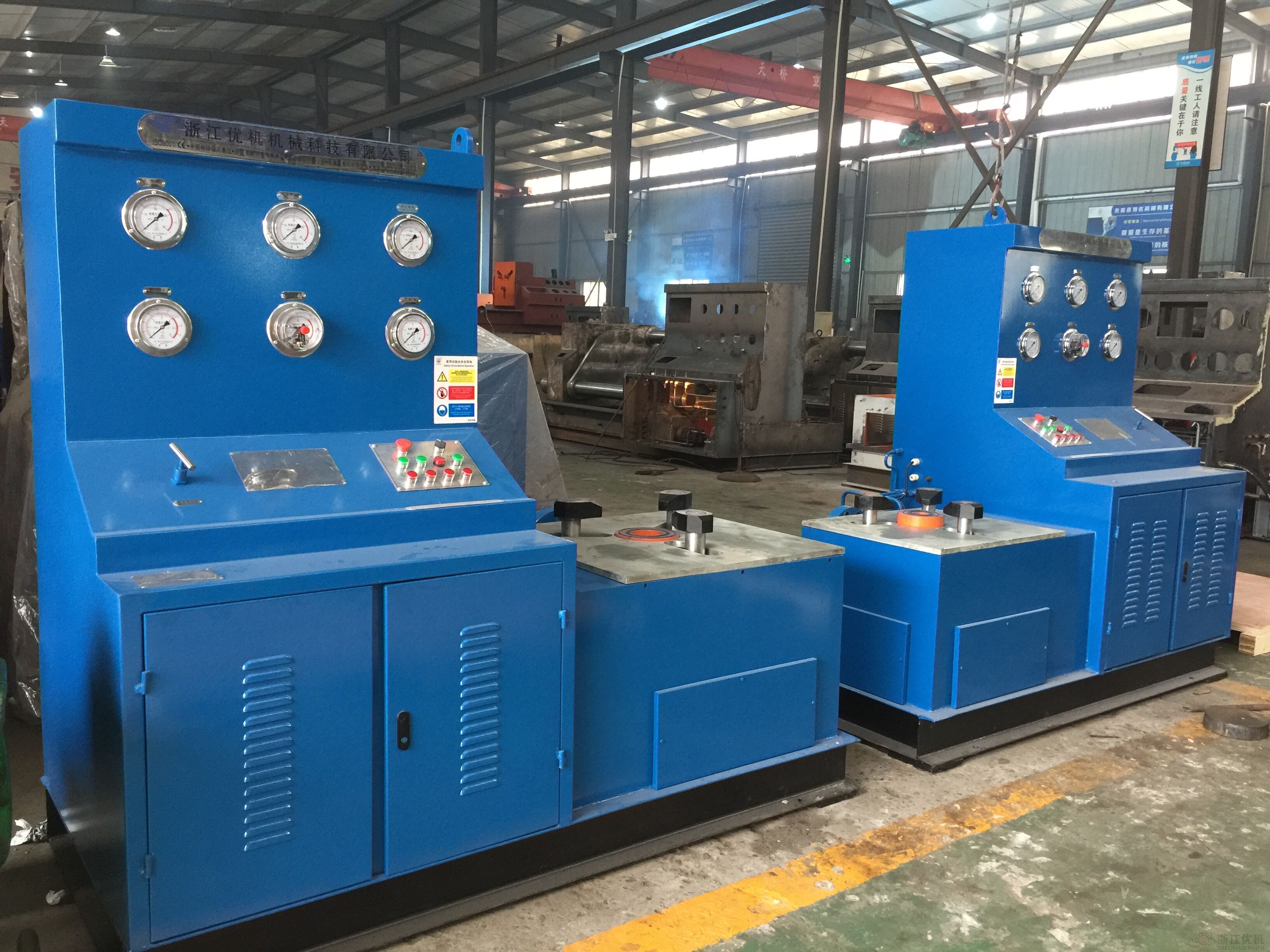 四、測試閥門時(shí),首先應(yīng)根據(jù)被試閥門試驗(yàn)要求,參照《夾緊油缸所需壓力對照表》進(jìn)行所需壓力增壓調(diào)節(jié)。嚴(yán)禁增壓超高